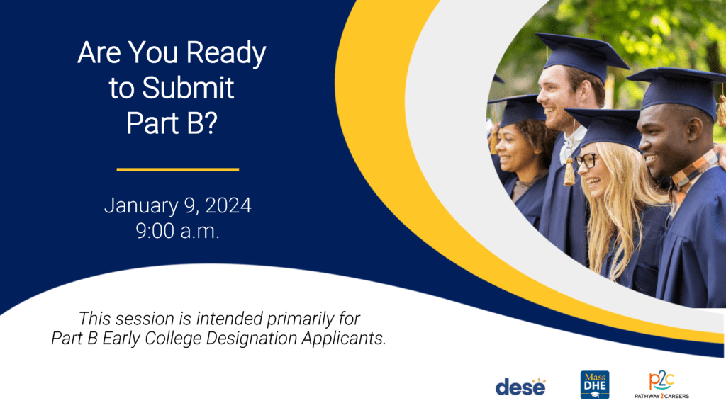 NOTE: Part B sessions are listed below. However, to access recordings and slides, please log in to the Educator Portal and visit the Early College Designation Applicants’ group.